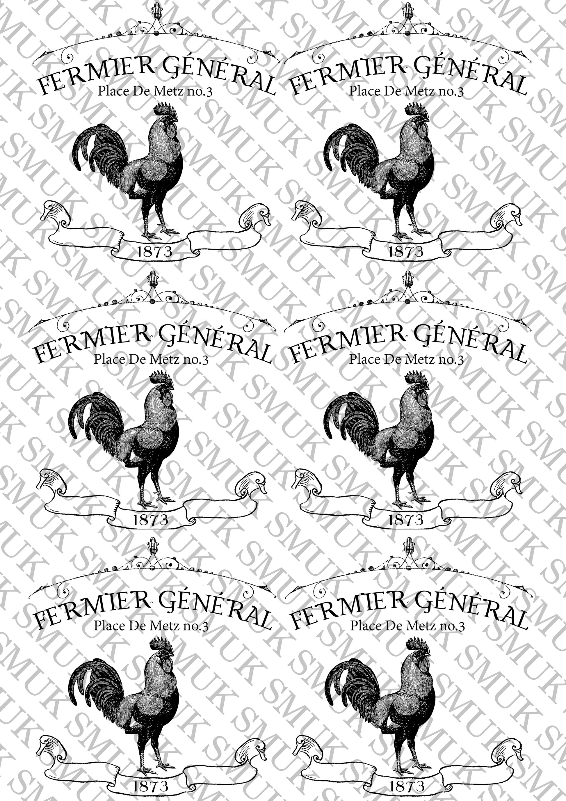 Fermier Rooster - Printable Old School Transfer - Decoupage